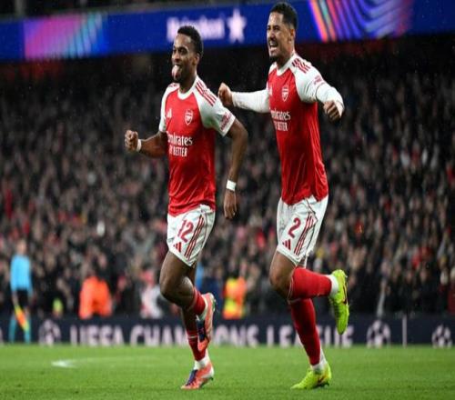 阿森纳首发:1-拉亚、12-廷伯、2-萨利巴、3-莫斯克拉、49-斯凯利、36-苏维门迪、41-赖斯、7-萨卡、10-埃泽、19-特罗萨德、23-梅里诺
