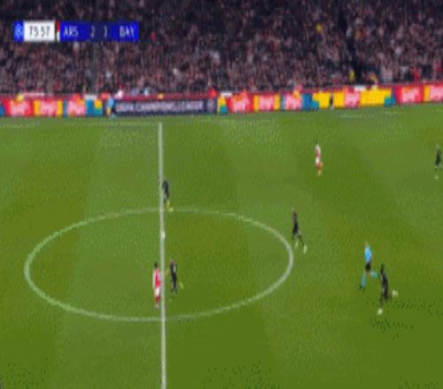 上半场,两队踢得势均力敌,射门3比3、射正1比1、创造破门良机1比1、角球机会1比1。第22分钟,萨卡角球助攻廷伯甩头攻门得手,帮助阿森纳1-0领先,随后第32分钟,格纳布里禁区做球送助攻,17岁卡尔跟进垫射破门,帮助拜仁1-1扳平比分。